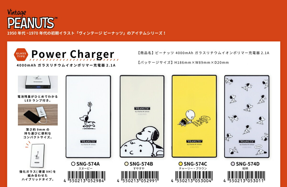 スヌーピー USB出力 4000mAh リチウムイオンポリマー 充電器2.1A PSE適合品 ピーナッツ キャラクター グッズ チャーリー・ブラウン SNG-574C ※6月下旬頃入荷予定
