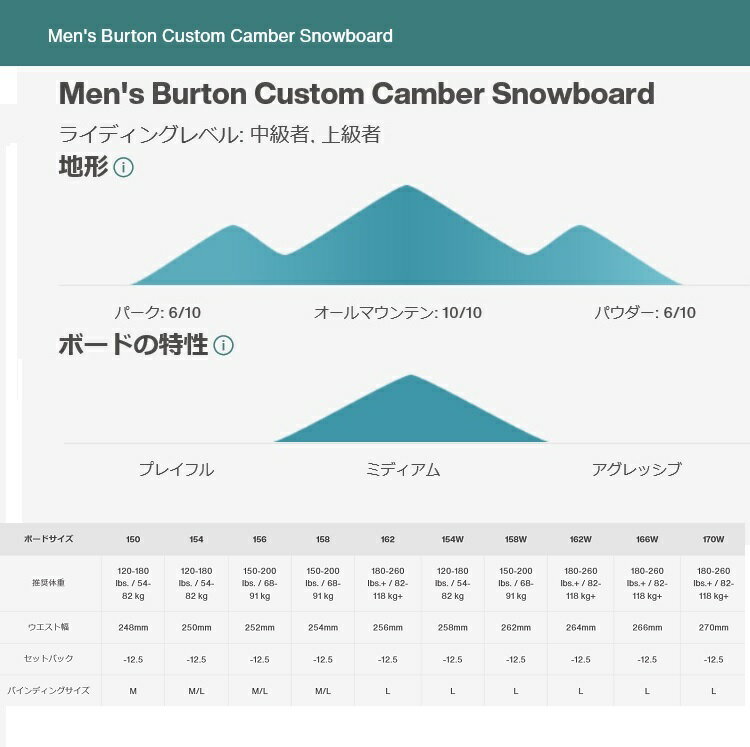 その誕生から地道に革新を続け、スノーボーディングにおいて最も人気があり、最も多様性に優れ、最も真似されるボードにまで登り詰めたメンズ バートン カスタム キャンバー スノーボード。
