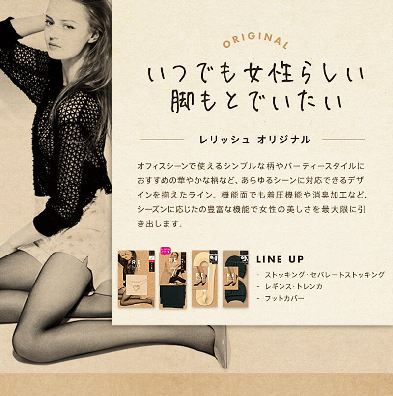◆RELISH サマートレンカの紹介ATSUGI(アツギ)のファッション性が高いレッグウェアブランド 「Relish(レリッシュ)」シリーズ。