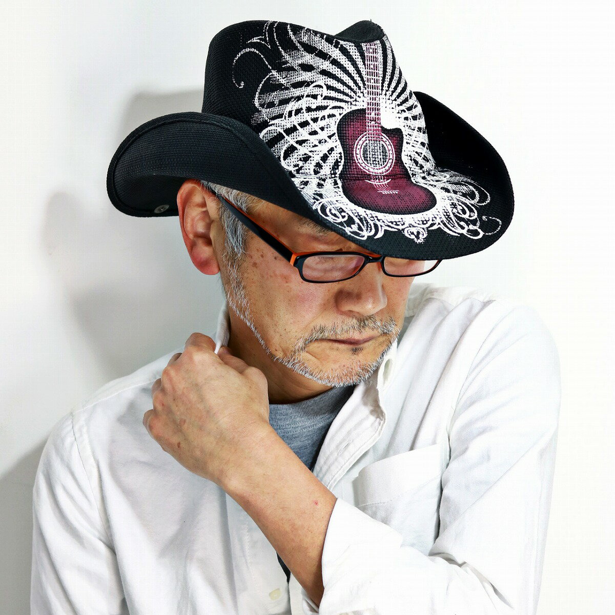 [全品5%OFFクーポン] ピーターグリム カウボーイハット メンズ ギター柄 ワイヤーブリム ペーパーハット 春 夏 petergrimm Truss ストローハット ギタープリント レディース 中折れ帽 麦わら帽子 個性的 ロックデザイン / 黒 ブラック [ wide-brim hat ][ cowboy hat ]